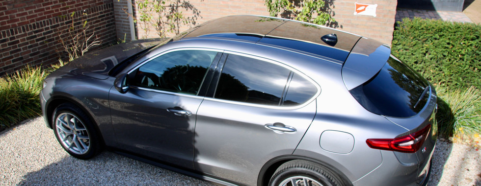 Deze prachtige en in nieuwstaat verkerende Alfa Romeo Stelvio 2.0 Q4 met 280 pk in de kleurcombinatie Grigio Stromboli met VELOCE - Cioccolato geperforeerd leder is een lust voor het oog
